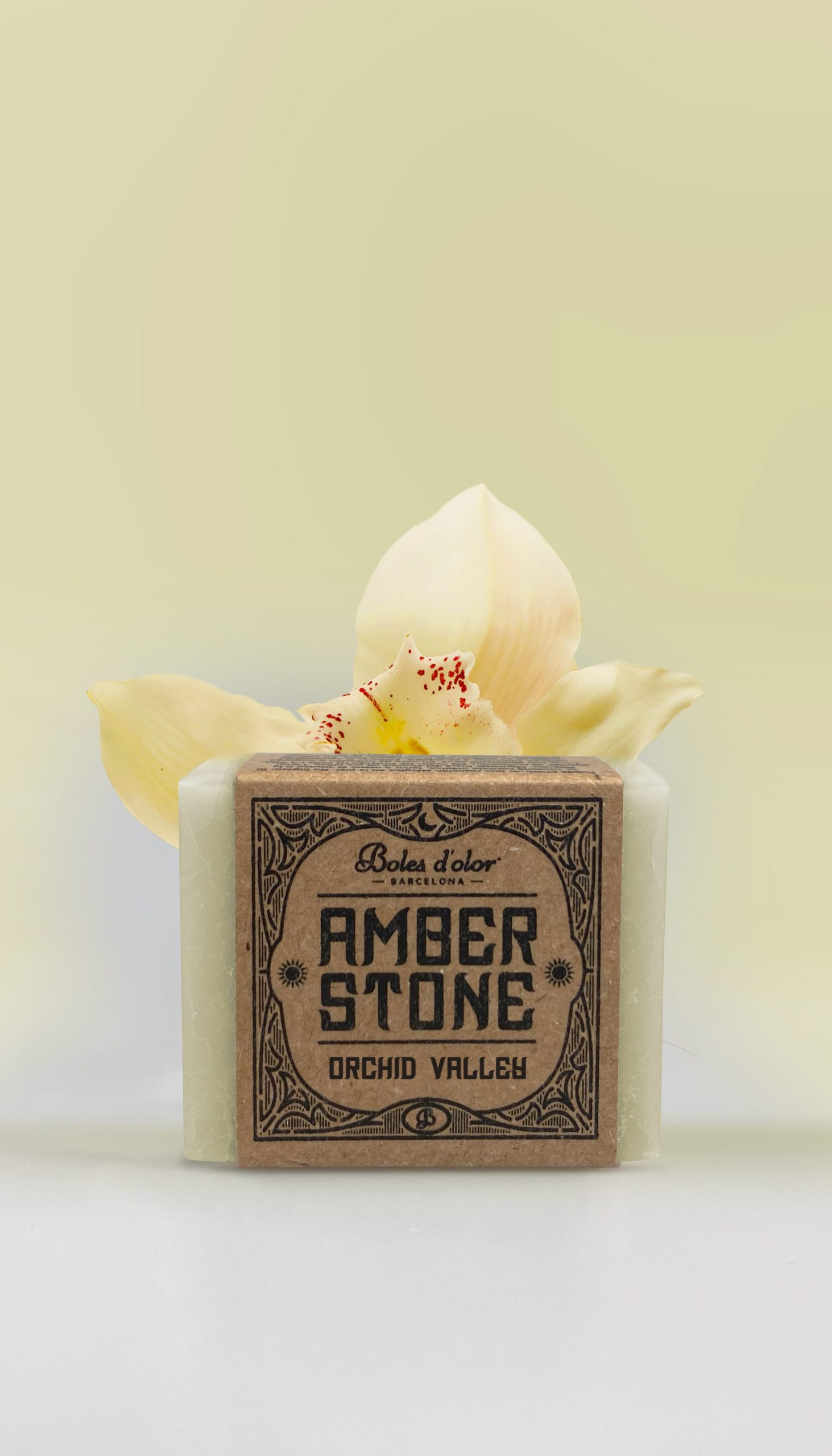 Nuestras Amber Stone están hechas de ambreina vegetal y aceites vegetales, mezclado con resinas, bálsamos, aceites esenciales naturales e ingredientes puros como polvo de rosa, raíz de iris y vainillina, que le dan a nuestras piedras de ámbar un aroma pleno, cálido, dulce y sensual.